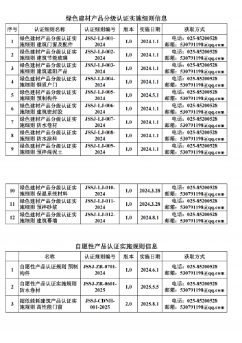 3、认证规则 如有需要,请通过致电025-85200528或邮箱530791198@qq.com等方式获取我中心认证实施规则全文。下表为认证实施规则信息及获取全文的途径。